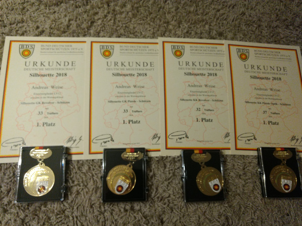Wir gratulieren Andreas Weise zu seinen vier ersten Plätzen, die er bei der Deutschen Meisterschaft des Bundes Deutscher Sportschützen gewonnen hat.