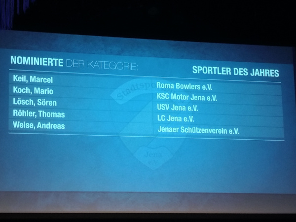 Zum zweiten Mal war Andreas Weise Kandidat bei der Wahl zum Sportler des Jahres. Die Ehrungsveranstaltung des Stadtsportbundes fand am 23.02.2019 statt.